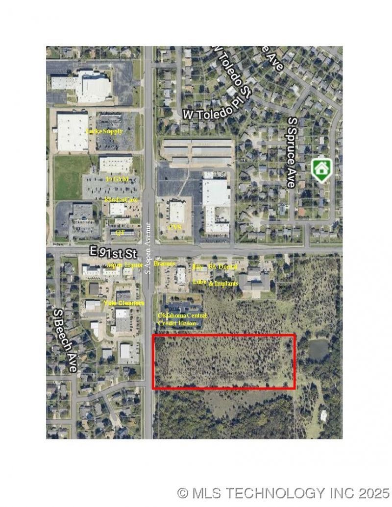 Great COMMERCIAL Potential! Great opportunity! 367 ft. of S. Aspen frontage. 7.83 acre parcel near the busy Broken Arrow intersection of S. Aspen Avenue and E. 91st Street.