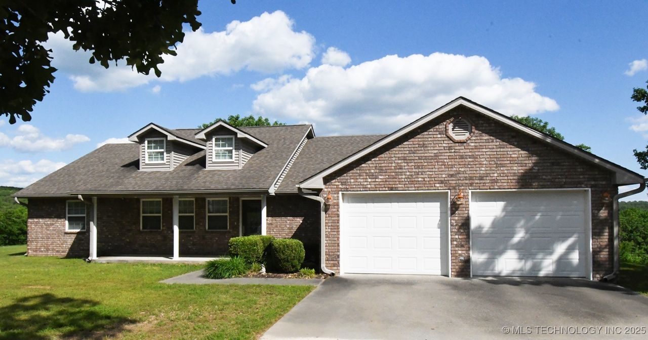 Custom-built brick home offers the perfect blend of comfort and low maintenance living. Now on approximately 5 acres (+/-) of picturesque land, you'll enjoy stunning valley views with the charming town of Vian on the horizon. Step inside to discover a spacious split floor plan boasting 3 bedrooms and 2.5 bathrooms, spread across a generous 2500 square feet (per court house). The primary bedroom is a true oasis, featuring a double closet, luxurious soaking tub, separate shower, and double vanity. The second bedroom comes with its own bathroom and convenient exterior access to the back patio with exterior ceiling fan to enjoy outside views. Every room in this home is designed with ample space and storage in mind. The chef's kitchen is a showstopper with custom cabinets, a practical island sink, and plenty of room for your favorite countertop gadgets. Don't forget the laundry area, complete with a dog/mud sink and extra cabinet space. Additionally the house is plumbed for dual hot water heaters to serve both sides of the home, whole house water filter, and wired for high end security. Outside, a long private circular driveway welcomes you home. The attached 2-car garage is perfect for your daily drivers which includes storage above for all those seasons, while the detached shop (approximately 42x24) stands ready to house your tractors, classic cars, or lake toys. Shop has ample shelving, two overhead doors and a personnel door. Speaking of water, the property features its very own pond and a seasonal creek - nature's own water feature! Located just a stone's throw from Gore, Vian, Interstate 40, Lake Tenkiller, Arkansas River, and Illinois River, adventure is always within reach. So, whether you're looking to put down roots or find your perfect getaway, this move-in ready home is waiting to welcome you with open arms! Some photos are virtually staged, furniture does not convey. Some covenants apply! Want more land? See adjoining 5 acres mls # 2600559.