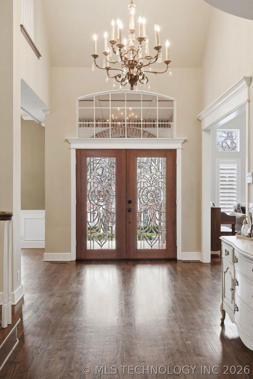 Welcome to a residence where elegance, comfort, and lifestyle come together in Graystone II Estates. Situated on a half-acre corner lot surrounded by mature trees, this home stands out with timeless white brick architecture and an elevated front entry that enhances its presence and charm. A grand two-story foyer opens to warm wood floors and refined architectural details. Formal living and dining spaces are ideal for entertaining, while the main living area features a brick fireplace and a wall of windows overlooking the backyard. The kitchen is designed for everyday living and hosting, with granite countertops, double ovens, a spacious island, and two pantries for exceptional storage. The primary suite is a private retreat with a double-sided fireplace and a spacious spa-like bathroom with dual vanities, soaking tub, separate shower, and two walk-in closets. Flexible spaces include a private office with built-ins, a large storage closet, and a downstairs bedroom with its own private entrance. Upstairs offers a bright loft filled with natural light, three additional bedrooms, a large bonus room, and a double-vanity bathroom. One bedroom includes a private en-suite. Outdoor living is exceptional: a covered patio opens to a pool and spa with natural stone and a custom waterfall, creating a serene resort-style setting. Multiple areas for entertaining and relaxing are surrounded by mature trees for privacy. A gas fire pit with built-in seating completes the experience. An above-ground F5-rated tornado shelter in the garage provides top-level safety. Additional features include a 3-car side-entry garage, new roof and carpet (2024), plantation shutters, crown molding, and a prime location near Bixby North Elementary. More than a home-it's a lifestyle.