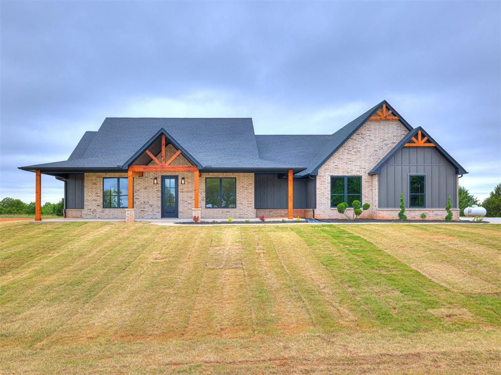 BUILDER OFFERING a $5,000 incentive!!! New Construction by Tiffany Styled Homes --Located in the sought-after Twin Oaks subdivision within Bridge Creek Schools, this stunning 3-bedroom, 2.5-bath home sits on a full acre, giving you the freedom to add a shop building or pool. Enjoy country living with an easy commute to both Oklahoma City and Norman via the turnpike and I-44.Inside, soaring vaulted ceilings and a dramatic floor-to-ceiling fireplace set the tone in the living area. The open kitchen impresses with an oversized island, butler's pantry, upgraded appliances, and granite countertops carried throughout the home. A true dedicated office completes the main living space.The primary suite features vaulted ceilings, a luxurious soaker tub, and a laundry room connected directly to the primary closet. Secondary bedrooms each offer walk-in closets and share a Jack & Jill bathroom. Outside, a large covered front porch and back patio capture beautiful sunset views, plus a storage room off the patio for added convenience. The 3-car garage includes 8-foot doors for larger vehicles.Don't miss this one!