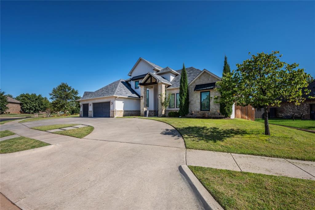 Discover unparalleled elegance at 15400 Kestral Park Court in Edmond, OK 73013-a breathtaking luxury waterfront residence nestled within the prestigious gated community of The Lakes at Traditions. This stunning 3,701 sq ft modern masterpiece offers 4 spacious bedrooms, 3 full baths plus 1 half bath (including a versatile mother-in-law suite for multi-generational living or guests), an oversized 3-car garage, and a generous 0.27-acre lot with a stately circle driveway. Step inside to soaring ceilings, expansive open sightlines, abundant natural light flooding through large windows, and a chef-inspired kitchen featuring premium appliances, high-end fixtures, and refined finishes that exude sophisticated luxury throughout. The true highlight awaits outdoors, where two covered back patios frame serene water views over the community lake-perfect for morning coffee, sunset gatherings, or simply soaking in tranquil lakeside living amid thoughtful landscaping. Residents enjoy resort-caliber amenities like scenic lakes, a sparkling community pool, recreation facility, walking trails, and park, all combining top-rated Edmond schools, security (gated entry), and easy access to city conveniences for an elevated, lifestyle. This iconic gated waterfront gem checks every box for those seeking privacy, grandeur, and everyday serenity-if you're ready to elevate your living, let's tour this beauty and make your dream home a reality!