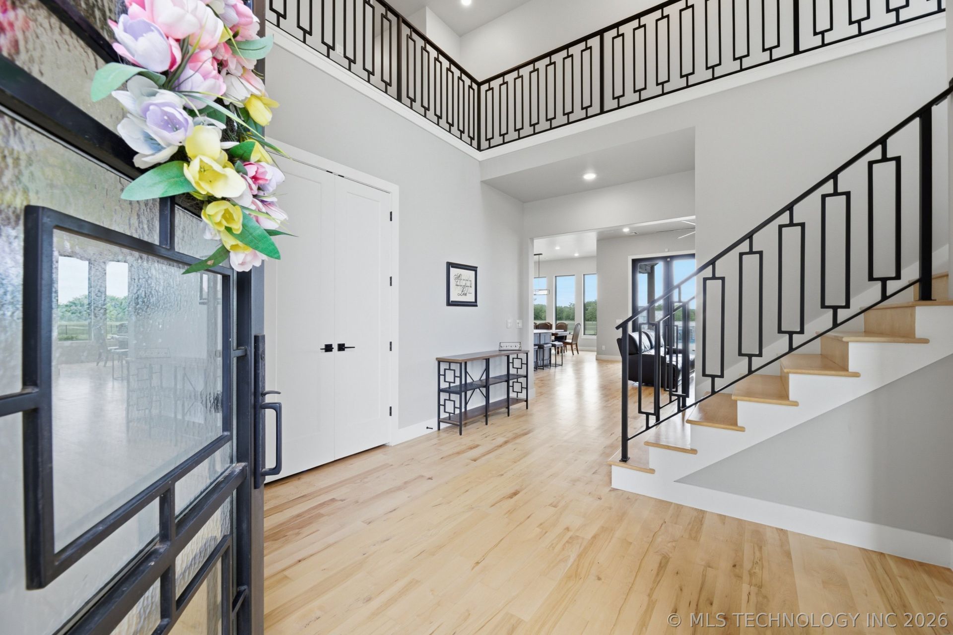 Outstanding 2.3 acre property in Bixby School district! Gated community with house backing to greenbelt neighborhood park with trails. Unique features such as 900 SF detached full living quarters. 4th car garage is separate and could be workshop. Wonderful back yard oasis with in-ground pool & spa with grotto, slide, tanning ledge, outdoor shower, gas firepit & built-in grill. Quality construction features such as full decorative fencing, top Class 4 roof, spray foam insulation, 2 tank-less water heaters, indoor saferoom with electric. Flexible floor plan with downstair master suite, formal dining, office (extra BR down?) & upstairs with 4 bedrooms, media room and game-room with wet-bar & outdoor balcony with a great view! 2 laundry rooms with one on both levels. Master bath with dual head shower, luxury soaking tub, huge closet and 2 separate toilet facilities. Kitchen with large breakfast bar, cooktop with pot-filler, built-in refrig, double smart oven, icemaker, & beverage bar & refrig. Storage cabinets and closets galore. Hardwood floors through-out. Very impressive!