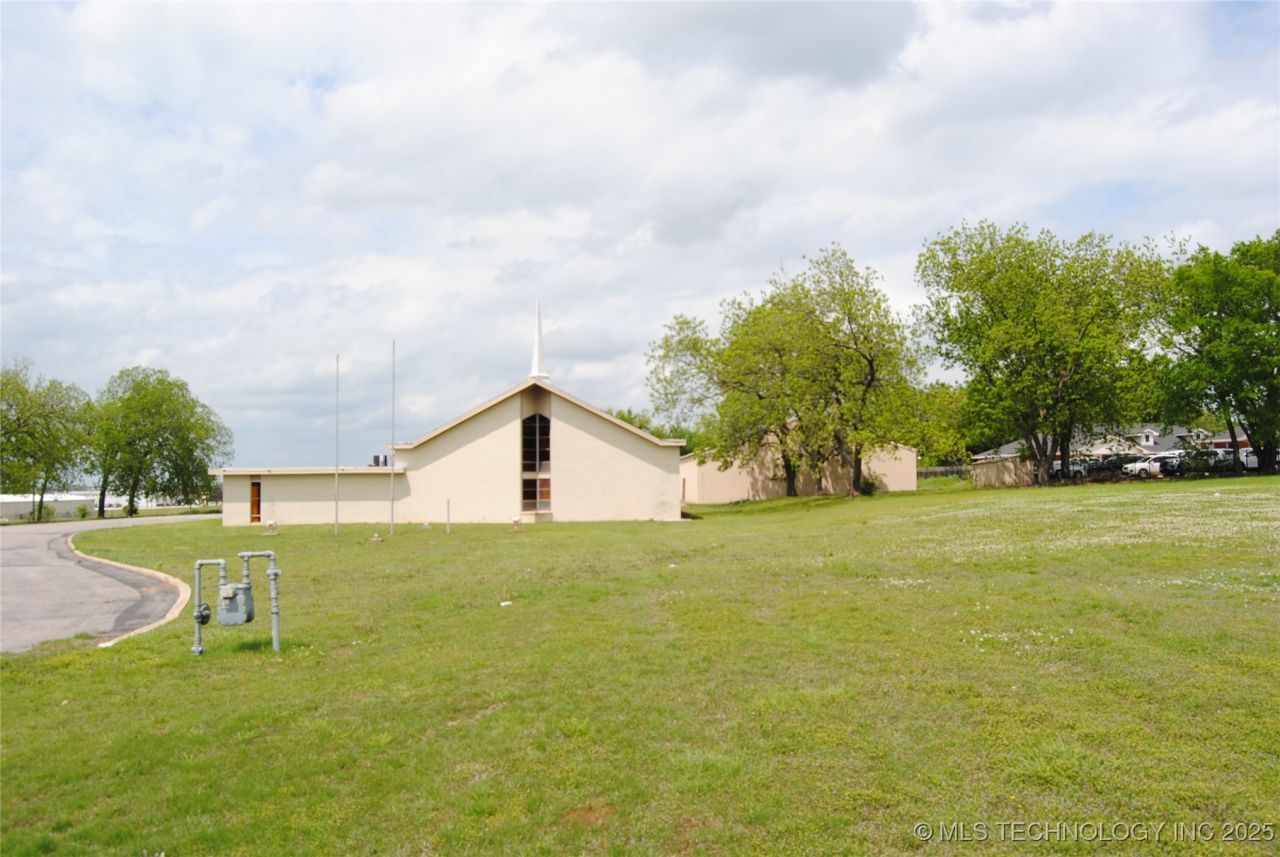 Opportunity in Ada,Oklahoma *Arlington Road Frontage* seller has June 2024 appraisal. The Church Building has a detached gym sized Activity Building and separate Parsonage or Rental home. Ready for a new congregation. Remodeled in the last 5 years. Activity Building has industrial sized kitchen and a loft for extra space. 3 bed 1 & 1/2 bath home. 3 parcels for a total of 4.48+mol acres. 2 of the parcels are Arlington frontage.