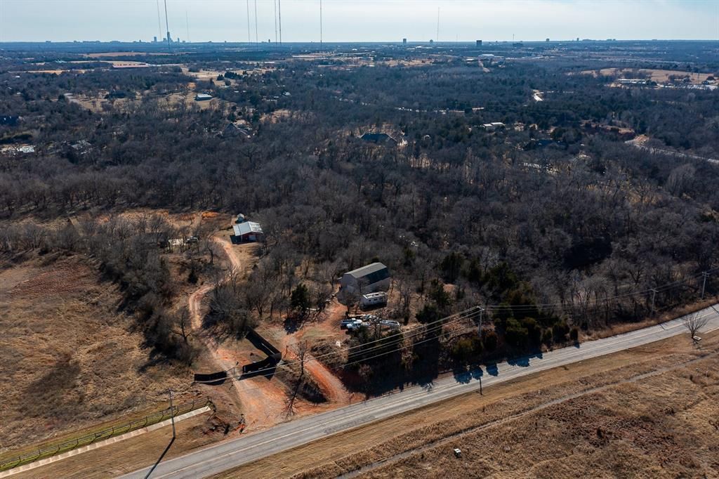 Fantastic opportunity to own 10.210 wooded acres in a prime location just off N.E. 122nd Street and Eastern Avenue, perfectly positioned on the edge of Oklahoma City and Edmond with easy access to the Turnpike and I-35. This rare, estate-level parcel offers exceptional privacy, natural beauty, and unlimited potential. The property features a 744 SF (MOL) home with 1 bedroom and 1 bathroom, a barn and an additional 160 SF (MOL) studio space. Utilities are already in place with a septic system and water well, including a new pump and tubing. A private drive with keypad/remote gated entry provides added security and seclusion. Backing to a scenic creek, the land showcases stunning natural rock cliffs, mature Persimmon and Black Walnut trees and abundant wildlife, creating a peaceful, park-like setting. This is an ideal site to build your dream home, create an equestrian estate or design a legacy property that embraces the natural topography and conservation-minded living. Offered as-is, with primary value in the land. Opportunities like this are rare - protected, irreplaceable acreage in a highly desirable corridor with utilities in place and development nearby. Perfect for buyers seeking privacy, multi-generational living potential, studio or workshop flexibility, or long-term land investment in a rapidly growing area. House is being sold as-is.