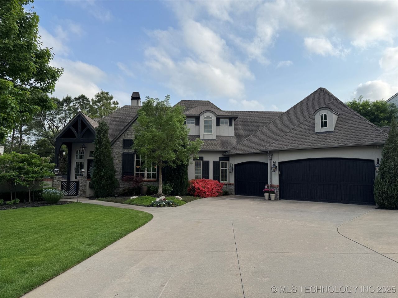 **Luxury French Provincial retreat with resort-style outdoor living** Situated on a manicured **0.32-acre** lot in the coveted Sheila?Terrace subdivision, this **2014-built** French Provincial-inspired residence blends classic elegance with modern amenities. Behind a brick, stone and stucco faade, the **two-story** home offers **5,054?sq?ft** of living space. A **concrete drive** leads to the **3-car attached garage**, and a welcoming entry opens to multiple living areas anchored by **two gas-starter fireplaces**. **Hardwood, tile and carpet flooring**, **high and vaulted ceilings**, and refined millwork add warmth throughout. The home's design is ideal for entertaining. Enjoy separate formal and casual spaces, **wet and dry bars**, and a gourmet kitchen with **quartz, granite and stone counters**, **double ovens**, **built-in range** and a **wine refrigerator**. Five bedrooms and **six baths** provide flexibility; the primary suite (pictured) includes a spa-like bath with soaking tub and large walk-in closet. Smart features-**programmable thermostat**, **casement/insulated windows** and **high-speed internet wiring**-ensure comfort. An **attic**, **safe room**, **generator** and **security system** add peace of mind. Outdoor living is a standout. French doors lead to a **covered patio** overlooking a **gunite pool with spa/hot tub**. Host gatherings with the **outdoor kitchen and grill**, **fire pit**, **sprinkler system**, **rain gutters** and lush landscaping. The **privacy-fenced** yard is framed by mature trees. Additional features include **no HOA**, **central air/heat with 3+ units**, **two fireplaces**, **ceiling fans**, and **laundry hookups**. Located within the Tulsa School District (Patrick Henry Elementary, Edison Prep. Middle & Edison High) and minutes from Midtown shopping and dining, this exceptional property offers a rare combination of luxury, privacy and convenience.