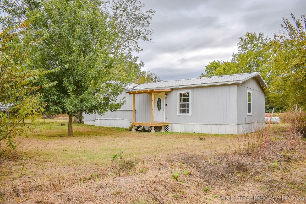 Approximately six-and one-half acres, pond, and house located less than 1/2 mile from the Choctaw Casino & Resort? YES! This home has an open concept, light and bright living area and kitchen with a charming, butcher-block dining island that offers additional storage space and seating for meals. The home offers a primary bedroom with a private bathroom with a gorgeous, tiled shower/tub combo and a very spacious walk-in closet. There is an additional room perfectly suitable as a second bedroom but does not have a closet so use of an armoire would be perfect for clothing storage. Nearby is a bathroom with a stand-up shower with dual bench seating. The home also has a large utility room with full-size washer and dryer connections, a folding counter and abundant cabinetry for storage. The Property also offers a spacious building for storage needs, an inground storm shelter and a carport for parking out of the elements right next to the home's entry. Don't miss out on this great opportunity to own an affordable property as a full-time residence or VRBO that provides peaceful, rural living just minutes away from the popular casino and resort for entertainment and dining, in addition to being a very short distance from the conveniences of town in Hugo and also nearby Paris, TX, only twenty minutes away. Because the Property is platted as lots it is very suitable for division and/or additional residences or developed into a small RV park should one wish.