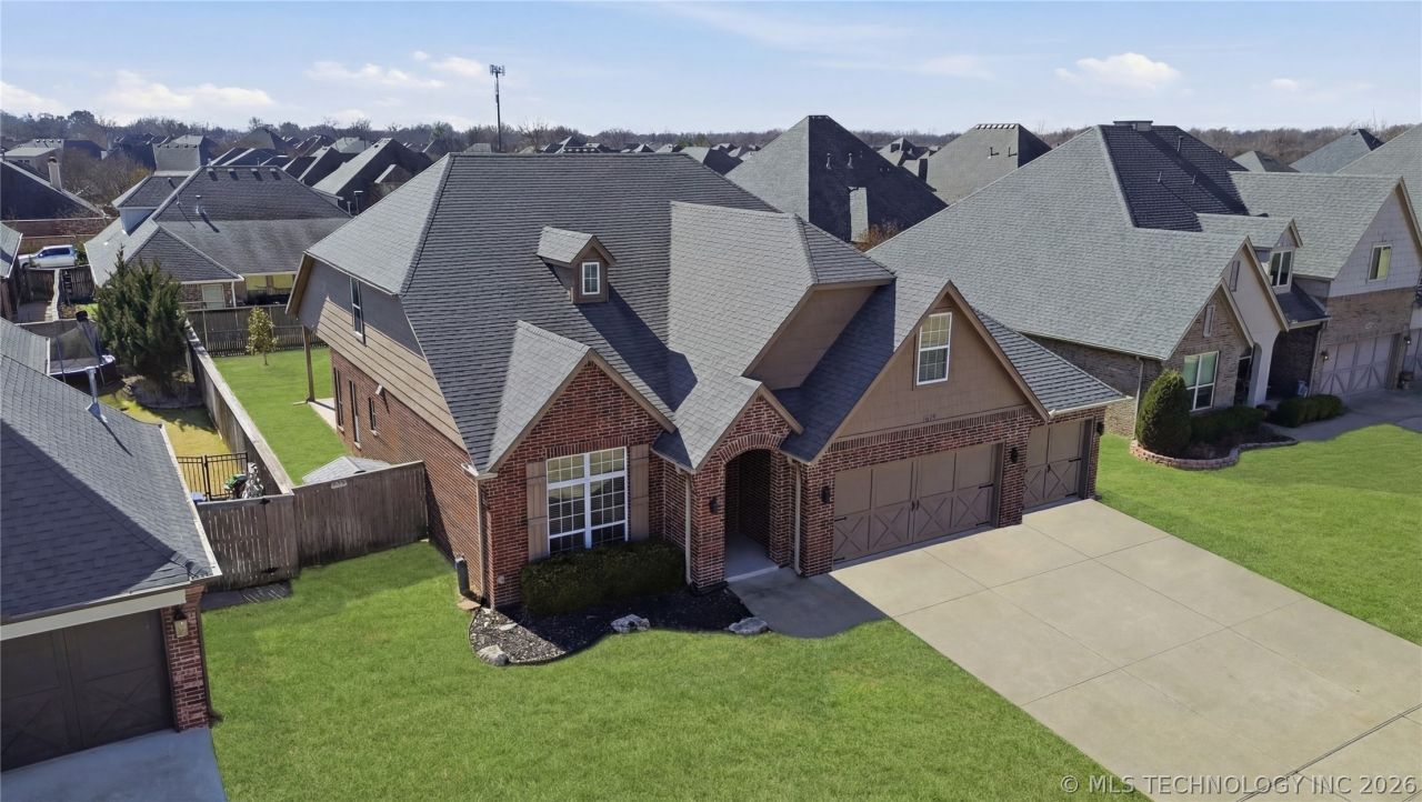 Welcome home to Millicent Pond, where space, light, & thoughtful upgrades come together in one beautifully designed South Tulsa home. From the moment you step inside, you'll feel the openness-thanks to a two-story entry, soaring vaulted ceilings, & sunlight pouring through every level. This 4-bedroom, 2.5-bath home with a 3-car garage was built for everyday comfort & easy entertaining. The open layout flows effortlessly, offering a formal dining room, a private office or sitting area, & a spacious living room anchored by a cozy corner gas fireplace. Movie nights are already set up with a 135-inch home theater screen that stays with the home-perfect for hosting friends or family. The heart of the home is the bright, timeless kitchen-finished in crisp white cabinetry with granite countertops, under-cabinet lighting, three prep zones, & an oversized walk-in pantry. The main floor also includes a guest bath, a laundry room with sink, & a convenient mudroom just off the garage. Tucked away on the first floor, the primary suite feels like a private retreat, featuring vaulted ceilings, a large walk-in closet, dual vanities, a soaking tub, & a beautifully remodeled walk-in shower with bench. Upstairs, you'll find three generously sized bedrooms, all with walk-in closets, plus a game room & bonus/media space. Two walk-out, floored attic areas provide rare & abundant storage. Outside, the large fenced backyard offers plenty of room to relax or entertain year-round. Additional upgrades include fresh interior paint, hardwood floors, a tankless hot water heater, whole-home water softener & filtration system, sprinkler system, & security system. Located in the Union School District & minutes from South Tulsa shopping, dining, & entertainment, this home is meticulously maintained, thoughtfully updated, & truly move-in ready.