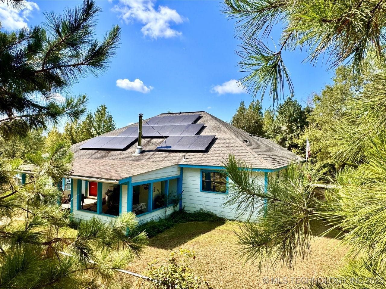 Energy-efficient 3BR home on 5 wooded acres just 2.5 miles north of Ft. Towson. Interior features 10-ft cove ceilings with a southwest color scheme. Spacious open living area with a cozy wood stove that flows into the large kitchen with granite counters, birch cabinets, and pantry. Master bath has dual sinks, shower, jetted tub, and his/her walk-ins. Includes 48 U.S.-made solar panels (only 4 electric bills over $29 since install) and also wired for a generator and there is one available for purchase. There are 2 wells on the property, the new one that the house is hooked up to as well as a backup. There is a nice open 12 x 24 porch adjacent to the living area and a 20x20 garage with 8.5x6 corner cubby for tools and such. Chain-link fenced yard with several peach trees. Septic is a 1,000 gallon tank with 300 ft of lateral lines. Land features include a pine hardwood mix with rolling hills and a creek dissecting the property with deer crossings on both sides! Plenty of privacy, plenty of efficiency and enough space for comfort!