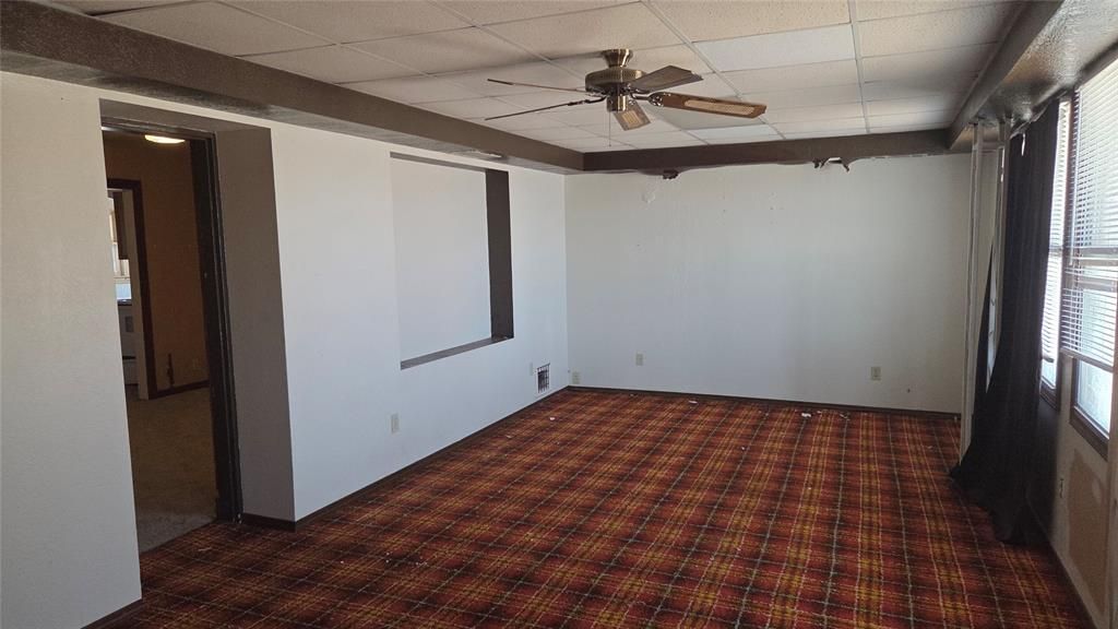 Large home, could be single family, or two-family. Great potential for investment, flip, or sweat-equity. The downstairs and the upstairs are each complete 2 bed home units. Double garage with large attached workroom (15 x 20) and storm shelter with possible 1/2 bath. The ground floor unit has a large living, separate dining, separate breakfast area and kitchen with updated cabinetry plus an over-size laundry/office/hobby room. Approx 1500 sf on main level, 1200 sf on second level.Second level has a supersized living room and an over-sized main bedroom. The second bedroom is near a hall bath. There has been water damage in the past but the roof was replaced and there are no apparent roof leaks. Property is being sold in as-is condition.
