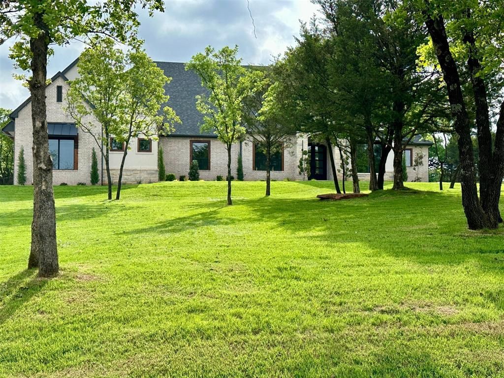 RECENTLY COMPLETED BRIGHT & OPEN TRANSITIONAL/MODERN STYLE HOME ON A WOODED 2.07 ACRE LOT ONLY MINUTES FROM I-35 AND SHOPPING. ALL ONE LEVEL INCLUDING A THEATHER/GAME ROOM W/A CROSS BEAMED ACCENT LIGHTED RECESSED CEILING, LARGE WET BAR, ICE MAKER, & WINE/BEVERAGE COOLER. HOUSE FEATURES WHITE OAK WOOD FLOORS, PAINTED WOODWORK, & WHITE OAK BASE TRIM & CABINET ACCENT PIECES. FAMILY ROOM FEATURES A 13' RAISED CEILING W/OAK BEAMS, A LINEAR GAS FIREPLACE W/TILE SURROUND, AND A 12'X8' SLIDING PATIO DOOR. DOUBLE 9' METAL ENTRY DOOR. KITCHEN OFFERS A LARGE BREAKFAST/CENTER ISLAND, 10' HIGH LIGHTED CABINENTS, SIDE BY SIDE REF./FREEZER, & A COMMERCIAL FREE STANDING DOUBLE OVEN. MASTER BATH INCLUDES MARBLE VANITIES W/MAKE UP BENCH AND A FREE STANDING STONE TUB INSIDE A LARGE FULLY TILED GLASS SHOWER INCLOSURE. MASTER BEDROOM FEATURES A 11' RAISED CEILING WITH ACCENT LIGHTING. LARGE COVERED OUTSIDE LIVING AREA W/WOOD BURNING FIREPLACE. OVERSIZED HALF BATH HAS A REAR EXTERIOR DOOR WHICH ALLOWS ACCESS TO A FUTURE POOL. 10' CEILINGS IN ALL THE BEDROOMS. PLAN INCLUDES A LARGE WALK- OUT STORAGE/BONUS ROOM (APPROX. 600 SQ. FT.) OVER GARAGE & HOUSE WHICH COULD BE CONVERTED TO A GAME ROOM W/FULL BATH OR A 5TH BEDROOM. THREE CAR GARAGE IS FULLY INSULATED. MODERN STYLE WOOD WORK, FIXTURES, & DECOR LIGHT UP THE IMPRESSIVE BEAUTY OF THIS NEW HOME. A HIGH QUALITY BUILT HOME W/MANY CUSTOM DESIGN FEATURES. NOTES: AN OUT BUILDING OR GUEST HOUSE IS ALLOWED AND COULD BE LOCATED NEAR THE END OF THE DRIVEWAY OR MORE TO THE BACK OF THE PROPERTY. ONLY THE HOME BUILDER HAS CONSTRUCTION ACCESS FROM BEHIND THE PROPERTY FOR A FUTURE BUILDING. THE OIL LEASE ROAD EASEMENT AT THE REAR PROPERTY LINE HAS BEEN VACATED.