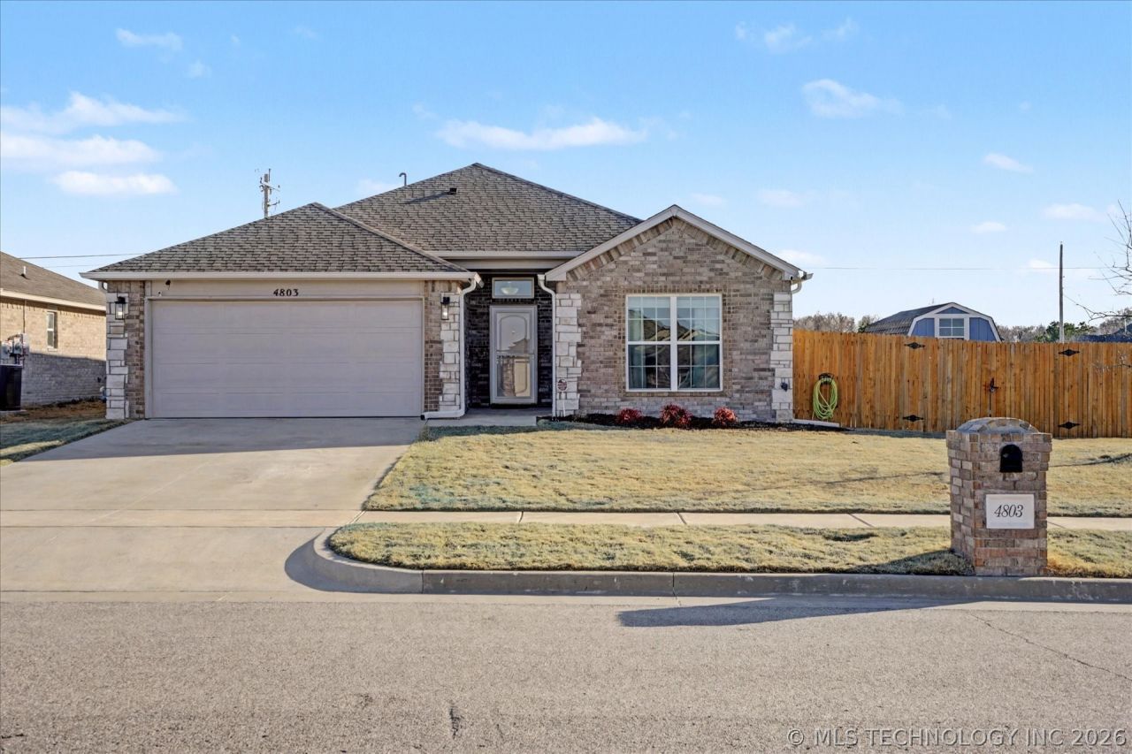 Impeccably maintained home! Wide, spacious entry way greets you as you step into this beautiful 3 bedroom, 2 bathroom house. Soaring ceilings add to the open concept in the living room and kitchen. Kitchen is light and bright with granite counters. Enjoy the natural sunlight streaming through the windows. Master bathroom is a showstopper with an absolutely GORGEOUS shower! Eye catching curb appeal on this brick home with stone accents. Fully fenced backyard with a 8 x 12 shed for additional storage. Home is perfectly situated in Broken Arrow with easy accessibility anywhere you need to go.