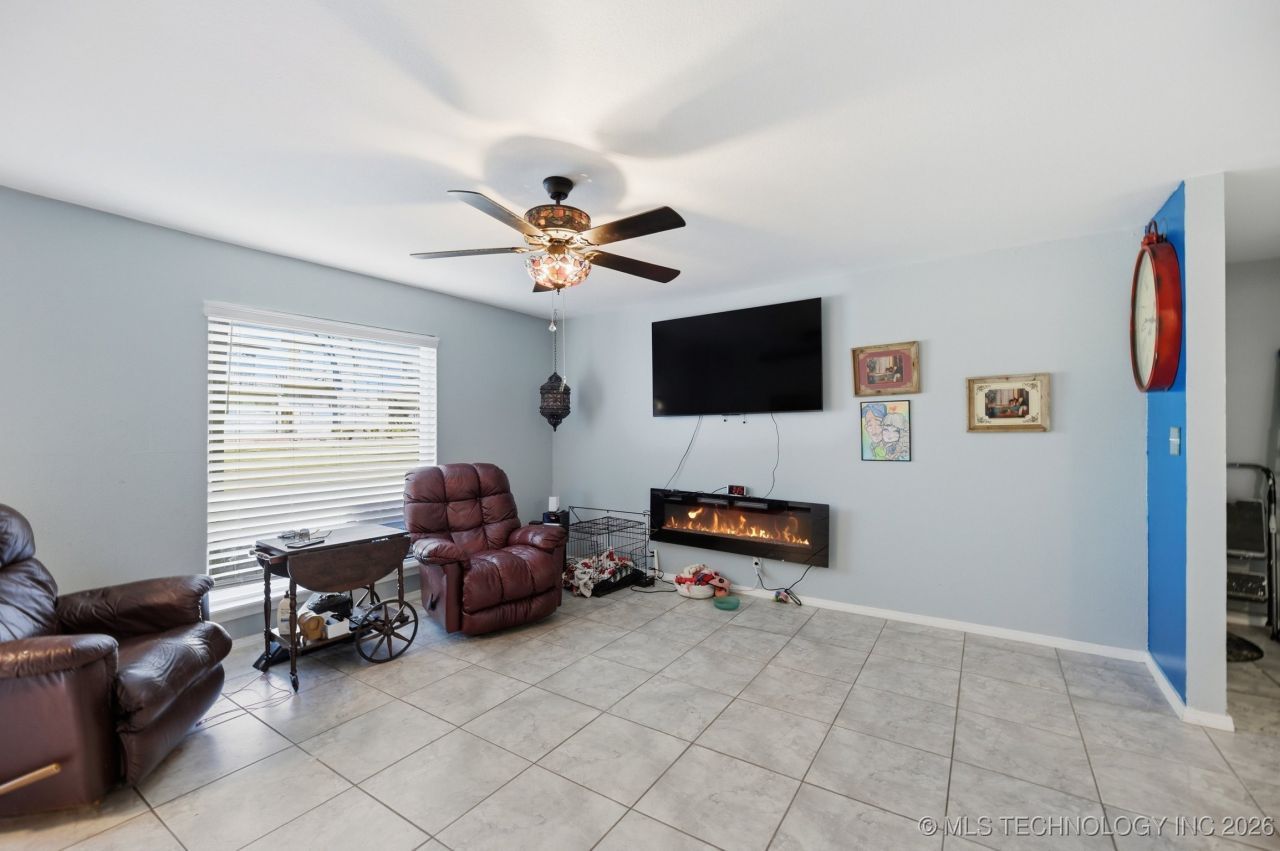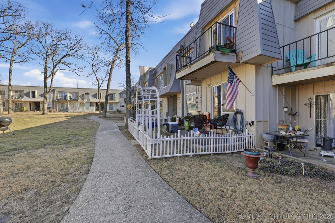Beautifully updated First Floor 2 Bedroom, 2 full bath in one of south Tulsa's most desirable locations. Kitchen remodel includes new appliances and cabinets with an added Pantry. Updated Electrical & HVAC 2-3 years old. Security Cameras stay. Recently painted. Newer appliances all stay including Stove, Dishwasher, Refrigerator, Washer, Dryer & Disposal. Has a Fireplace hanging on the wall that's not only for looks, it actually puts out heat and has a remote. Added a cabinet & shelves in utility room. Fenced in Patio including a small electric lawnmower & blower. Back on the market not due to the seller.