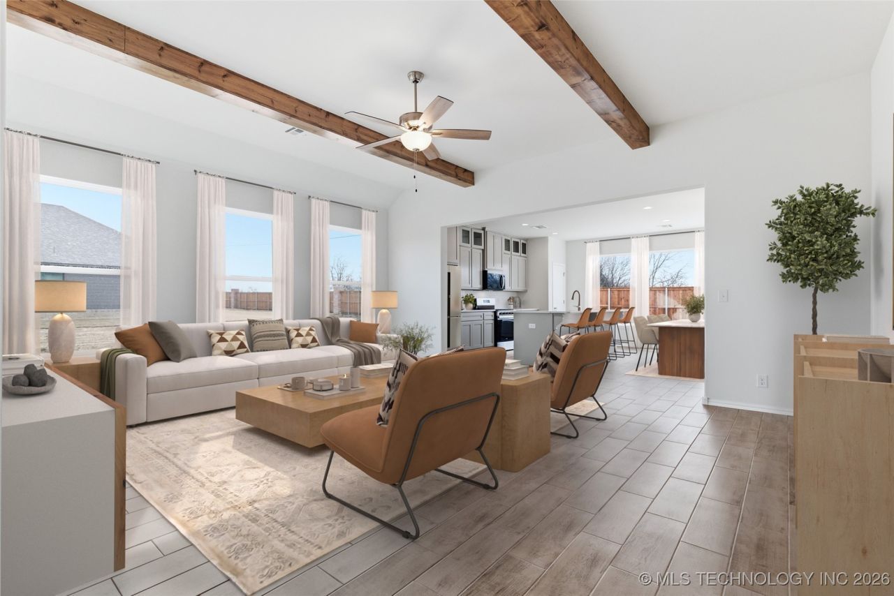 You'll be sure to fall in love with the Lincoln, one of our most popular new construction floor plans. This thoughtfully designed home offers 4 bedrooms and 2 baths, with a private primary suite tucked away in the corner for added privacy. The spacious primary suite features a luxurious oversized shower and dual vanities, creating a relaxing retreat at the end of the day. Homebuyers are drawn to the open-concept layout, where the kitchen-complete with quartz countertops-overlooks a large dining area ideal for family dinners and hosting gatherings. Wood beams in the living room add warmth and character, while the home's location in a beautiful community within a sought-after school district makes it even more appealing. This brand-new home blends comfort, style, and functionality in all the right ways.