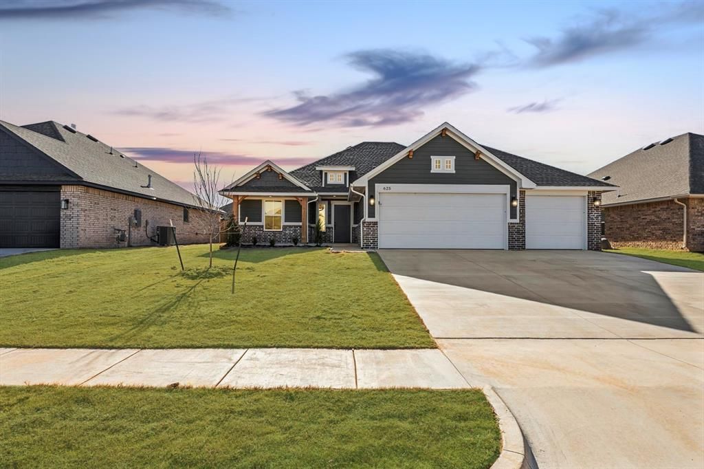 New Year Builder's Incentive: $5,000 towards closing cost / upgrades on this home - call for details!!!! Introducing Heritage Plains Community in Shawnee Oklahoma at 625 Trails End - The David Plan-a masterfully designed home that blends contemporary architecture with modern conveniences, creating a residence that is as functional as it is beautiful. From the charming craftsman-style exterior to the thoughtfully curated interior finishes, every detail has been designed to inspire. Step through the entry into a breathtaking living room, where soaring ceilings and oversized picture windows fill the space with natural light. A sleek, designer fireplace anchors the room, offering both warmth and sophistication, while the open layout creates an effortless flow for both everyday living and entertaining. At the heart of the home, the chef-inspired kitchen offers everything you've been dreaming of-an oversized island with counter seating, designer tile backsplash, a generous walk-in pantry, and premium stainless steel appliances, including a gas range. Overlooking both the Great Room and dining area, it's the perfect space to connect with family or host gatherings with ease. The private primary suite is a true retreat, featuring a spa-like bath with dual vanities, a freestanding soaking tub, a walk-in shower, and an expansive closet. Designed with privacy in mind, the split-bedroom layout includes two large secondary bedrooms and a beautifully appointed bath, while a dedicated home office (or optional 4th bedroom) near the entry provides flexibility to suit your lifestyle. Modern elegance is found throughout with a neutral color palette, exquisite tilework, and designer lighting-allowing you to personalize the space and make it your own. The David Plan represents the perfect harmony of timeless style and everyday comfort, offering an elevated living experience in every detail. Sprinkler System included. Welcome home to Heritage Plains in Shawnee, Oklahoma.