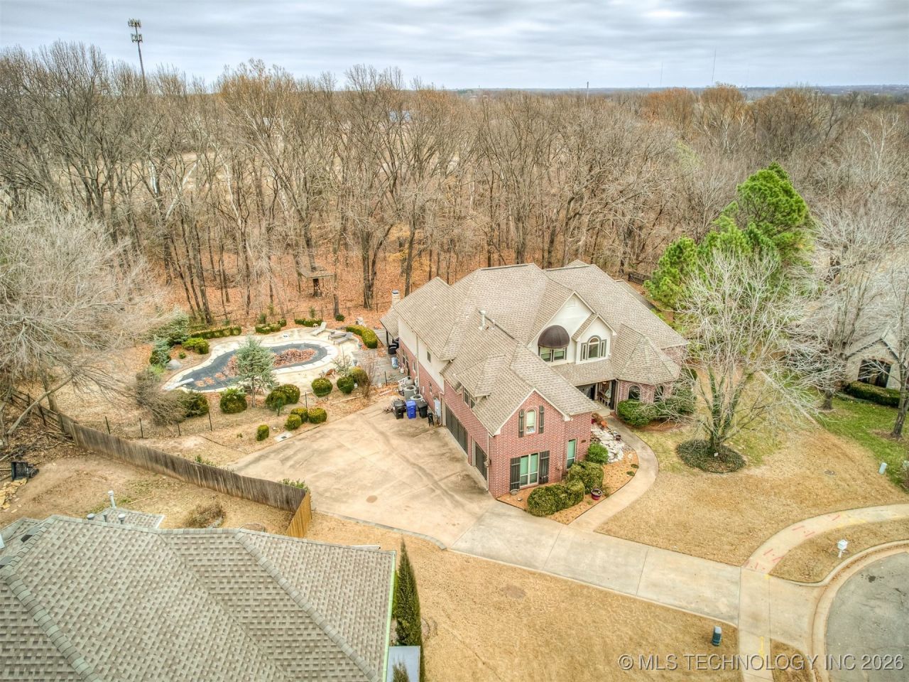 5-BEDROOM, 4.5-BATH CUSTOM HOME ON 2.11 +/- ACRES WITH SALTWATER POOL, OFFICE, AND INDOOR SAFE ROOM IN BROKEN ARROW! Located at the end of a quiet cul-de-sac, this custom estate offers a rare combination of privacy, scale, and functionality. The property includes approximately 0.4 +/- acres with the home and pool, plus approximately 1.65 +/-acres of fenced, wooded land, all conveying together. The home features 5 bedrooms, 4.5 bathrooms, 2 living areas, and a 3-car garage, with a floor plan designed for everyday living and entertaining. The kitchen is equipped with granite countertops, large island, double ovens, 2 dishwashers, ice maker, and built-in stainless steel refrigerator and freezer. A butler's pantry includes a sink, storage, mini refrigerator, and second ice maker. The office features floor-to-ceiling dark wood paneling, bayed windows, built-in granite desk, and an interior safe room. The primary suite offers a sitting area, heated tile floors in the bathroom, granite finishes, and a custom walk-in closet with a granite island, and makeup desk. Laundry is conveniently located in two areas, including the primary bathroom and an upstairs laundry. Outdoor living is designed for entertaining with an inground Gunite saltwater pool, vaulted beamed covered patio, decks, and an outdoor fireplace. Additional features include a sprinkler system, French drains, extensive landscaping, mature trees, decorative and privacy fencing. Conveniently located approximately 1.25 miles from the Creek Turnpike, 6 miles from Highway 51, and 9 miles from the Muskogee Turnpike, with Tulsa International Airport about 19 miles away. Nearby amenities include the Broken Arrow Rose District at approximately 5.5 miles, Tulsa Premium Outlets at 14 miles, and Tulsa Hills Shopping Center about 18 miles away. Quick access to surrounding communities includes approximately 6 miles to Bixby, 7 miles to Coweta, and 14 miles to Jenks. Schedule a private showing today. Buyer's agents welcome.