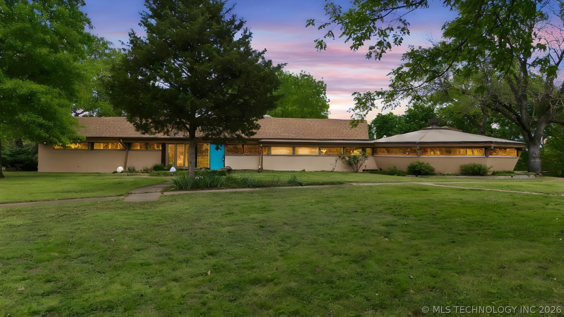 Step into a true architectural treasure-an iconic Russell Magee home inspired by the timeless design of Frank Lloyd Wright. Tucked away on 10 serene acres, this one-of-a-kind property offers a rare blend of history, character, and functionality. Designed to embrace natural light, the home features expansive windows and multiple skylights throughout, creating a warm and inviting atmosphere. At its heart is a remarkable circular living space with a central wood-burning fireplace-an unforgettable gathering area that has hosted up to 50 guests. The flexible floor plan includes a spacious game room ideal for a pool table or media space, a dedicated office with built-in shelving and cabinetry, a library or formal living area, and a wet bar equipped with a water purification system. Relax and unwind year-round with the indoor gunite pool (3-8 ft) featuring a new heater and pump, complemented by a heated redwood cedar sauna. A sunroom opens to a beautiful outdoor setting with a deck and rock patio, perfect for entertaining or quiet evenings. Equestrian enthusiasts will appreciate the classic red barn complete with a tractor shed, tack room, loft, and horse stall. The property is fully equipped for country living with mature shade trees, a pond, fenced garden area, flower beds, tree swing, and extensive decking in redwood and stone. A decorative wood and no-climb galvanized wire fence lines the front, along with an electric gated entry for added privacy. Extensive updates include Hardie board siding with foam insulation and stucco, a newer roof, four HVAC units, dual 50-gallon water heaters, alarm system, and recent paint. Originally built in 1960 and expanded in 1982, this home also offers potential eligibility for Historic Preservation recognition, with articles and floor plans available for review. A truly rare opportunity to own a distinctive, light-filled retreat where architecture meets nature-this is a property you must experience to fully appreciate.