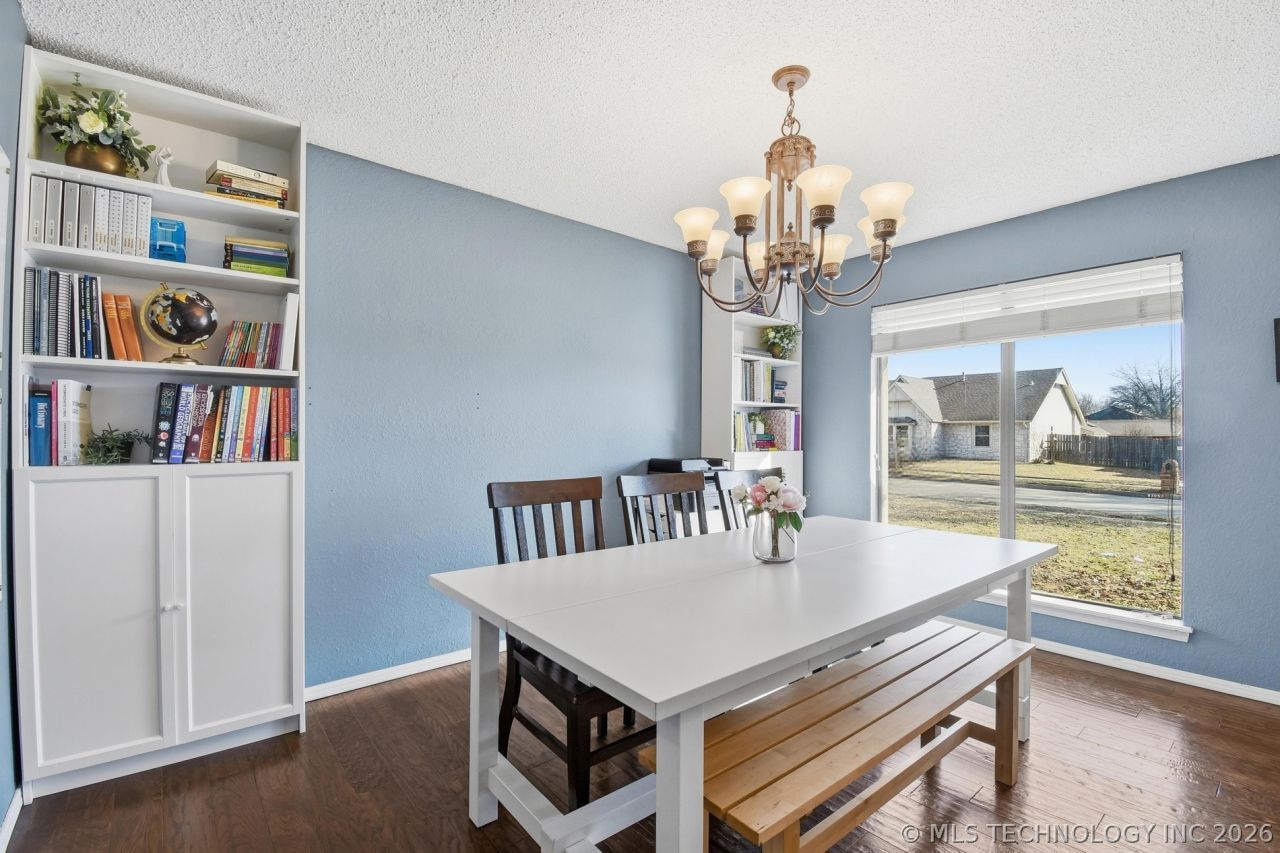 Welcome to Indian Springs, one of Broken Arrow's favorite suburbs. This bright and airy home sits directly off the golf course, offering beautiful, unobstructed pond views. Large windows fill the home with natural light, highlighting vaulted ceilings and creating an open, comfortable feel throughout. The thoughtful layout includes two living spaces, an eat-in kitchen, and a formal dining room perfect for family gatherings and special occasions. Recent updates within the last five years include a newer roof, fresh interior and exterior paint, newer granite countertops, and a remodeled second bathroom, adding both style and peace of mind. Outside, the fully fenced yard provides a safe, private space for kids and pets to play or for relaxing and entertaining. Located in a golf course community with mature trees and sidewalks for walking, this home offers a true sense of neighborhood charm.