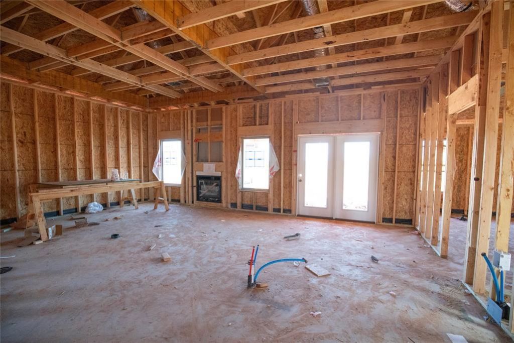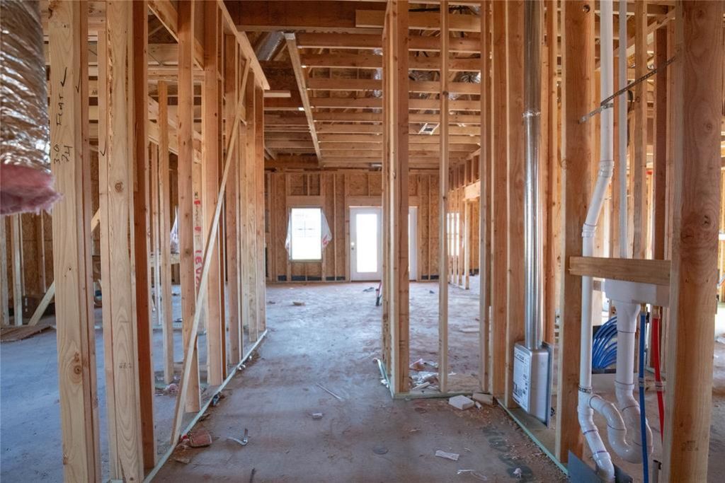 This Dane floor plan features 1,830 Sqft of total living space, which includes 1,700 Sqft of indoor space and 130 Sq Ft of outdoor living. This spacious home offers 4 bedrooms, 2 full baths, 2 covered patios, a utility room, a mudbench for additional storage, and a 2-car garage with an in-ground storm shelter installed. The sizeable living room welcomes a coffered ceiling with a ceiling fan, a center gas fireplace with our stacked stone surround detail, large windows, Cat6 wiring, and wood-look tile. The kitchen supports custom-built cabinets to the ceiling with glass and lights in the uppers, stunning pendant lighting, 3 CM countertops, a center island, a large corner pantry, modern tile backsplash, and stainless-steel appliances. The primary suite has a sloped ceiling detail with a ceiling fan, our cozy carpet finish, and windows. The attached bath features a dual sink vanity with framed mirrors, 3 CM countertops, a free-standing tub, a private elongated toilet, a European walk-in shower, and a HUGE walk-in closet. Secondary bedrooms feature sizeable closets, carpeted flooring, windows, and ceiling fans. Covered outdoor living area offers a wood-burning fireplace, a gas line, and a TV hookup. Other amenities include our healthy home technology, a tankless water heater, R-44 insulation, a whole home air purification system, and MORE!