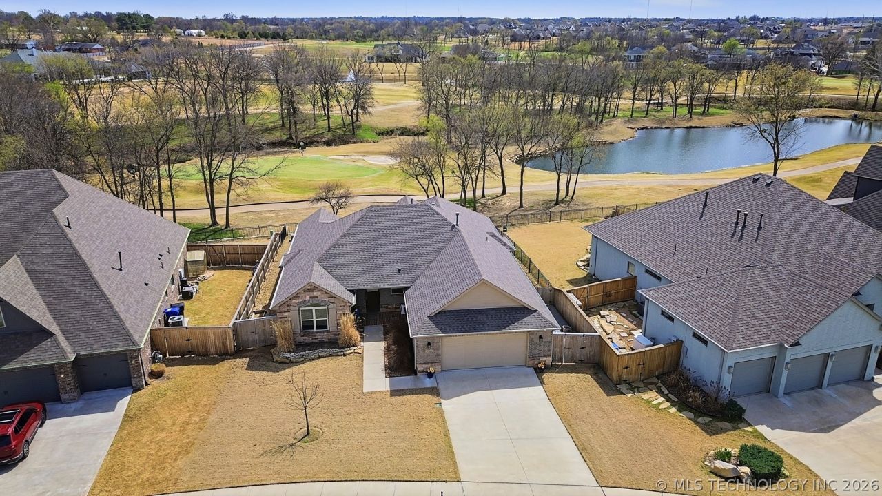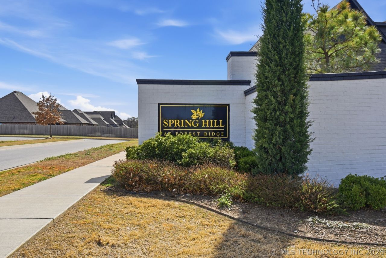 Fantastic views on this Stunning Greenbelt Lot!! Backs to 13th Green & Million Dollar Golf Course views !! Rolling hills with 2 mini-Lakes, fountains & More.. Tranquil and Peaceful at Forest Ridge's Spring Hill Addition...Wonderful single level, 3 Bedroom split plan with front office or 4th Bedroom. Over 2,400 SF featuring custom large tile flooring, wood floors & carpet. Vaulted Combo Family room / Dining with fireplace & custom built-in Bookcase / display shelf and a superior open Kitchen with wet bar, dry bar, huge walk in pantry, food prep or serving table, custom colors, abundance of granite counters & super white cabinet space.. Tons of Storage throughout this custom Home. Beautiful Golf Course views from 4 Rooms, 1 Bedroom with built-ins & private half bath. Great Primary Whirlpool bath suite. Breakfast Nook or dining opens to the covered back patio and the oversized faux wood deck with attached outside storage closet. Wow Factor when you see the breathtaking views in person. Safe room in the Garage with extra large utility featuring a sink & double cabinets. The Ridge Club is Private and has separate membership fee & monthly costs above the HOA dues. Fabulous Access to East & most of BA & Tulsa with the BA Creek Loop & Highway 51. Shopping districts, Fast & Fine Dining, City & County Parks, bike & jogging trails, The Rose District, Golf Courses, Medical Centers and Performing Arts all within a 5 to 10 Mile radius. You're going to Love the Forest Ridge Lifestyle & Area!!