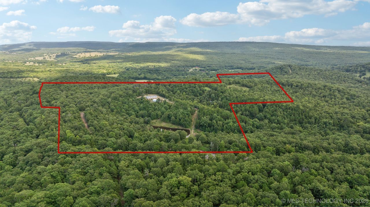 Looking for privacy and seclusion? Look no more! Check out this beautiful 64 acres that features privacy, seclusion, peacefulness, some pastures, and wooded areas which is great for hunting (squirrels, deer, wild hogs). The property was developed by the seller in 2021 with a vast and beautiful 2022 Champion Pinnacle double-wide mobile home with 5 bedrooms, 3 full baths, a large deck porch, an aerobic system, a Well, a 30x60 slab shop, 600-amp electricity and fast speed internet tucked back in that's located on a hilltop. The property features two ponds (the small pond has goldfish, and the large pond has large mouth and sonny fish), several chestnut trees, mature trees, rolling and sloping hills, and abundant wildlife (deer, wild hogs, squirrels, birds, bears, etc.). Enjoy sitting on the back of the porch and feel the cool breeze blowing, listen to nature and birds, and view the beautiful view of the mountains surrounding the property. The property is just 25 min from Interstate I-40/Sallisaw, OK,1 hr. 35 min. from Tulsa, OK airport, and 50 min from Fort Smith, AR. The property is just such breathtaking scenery! If you want privacy and seclusion, this is the place!